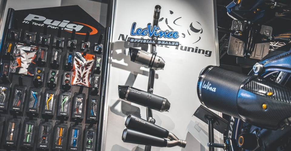 - Auspuffanlagen: Perfekter Sound und mehr Leistung mit Arrow, LeoVince, QD Exhaust, BOS und weiteren Top-Marken. Aerodynamik & Schutz: Bessere Luftführung und Schutz mit Puig Windschutzscheiben, Evotech Performance Sturzpads und Carbon Ilmberger Verkleidungen.